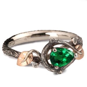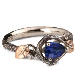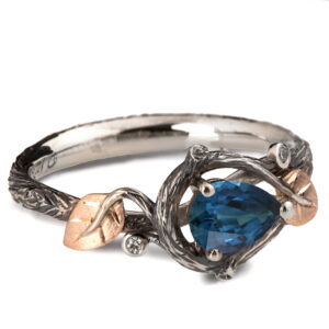 Rose Gold Alternating Black and White Diamond Halo Salt and Pepper Diamond Engagement Ring