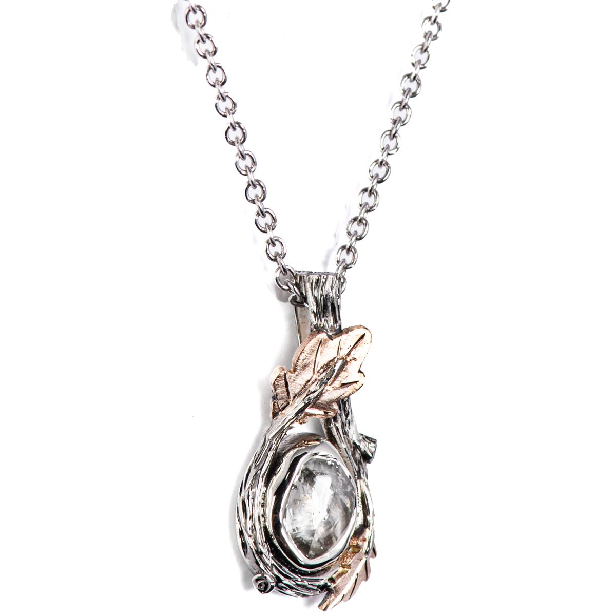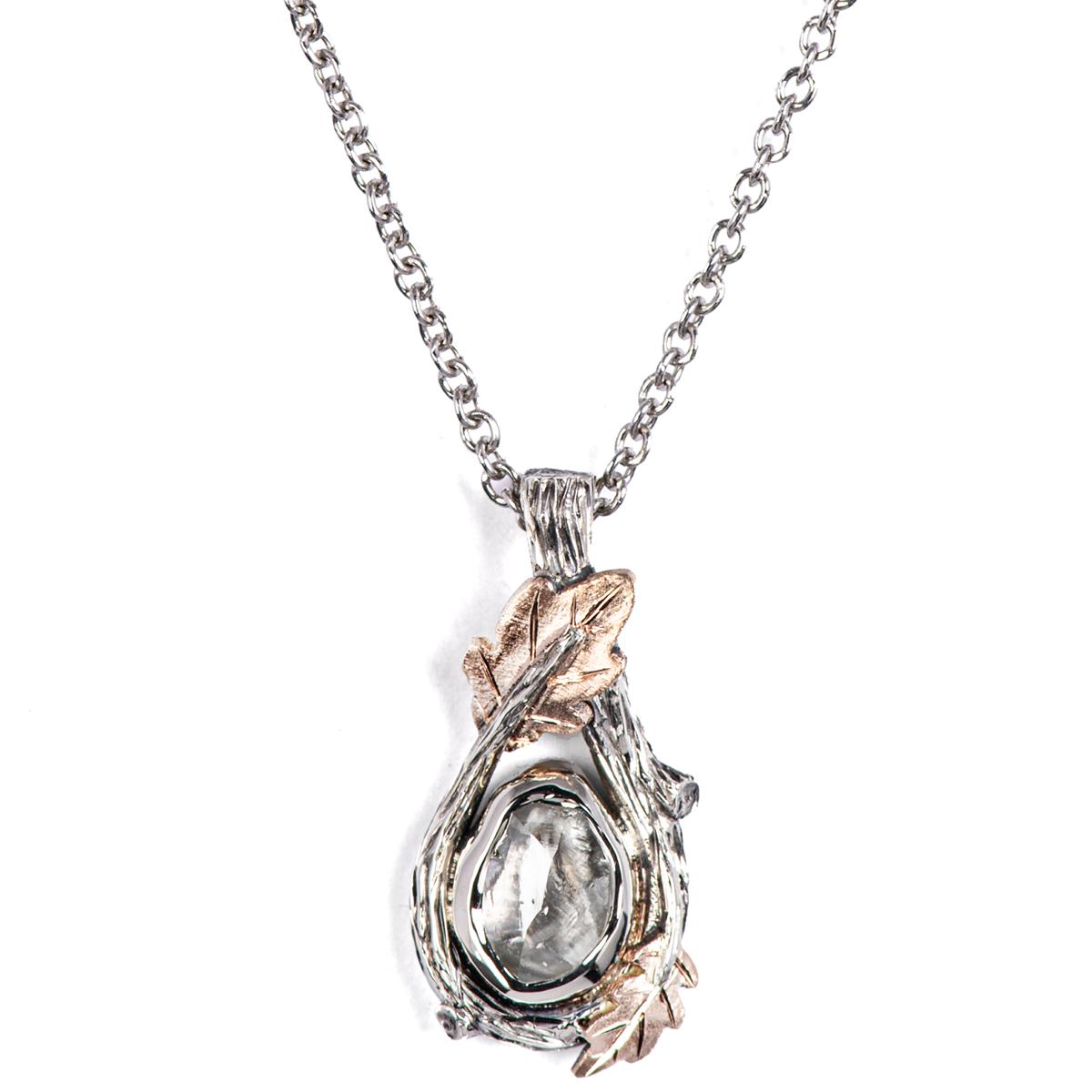 Black Twig and Oak leaves Raw Diamond Pendant