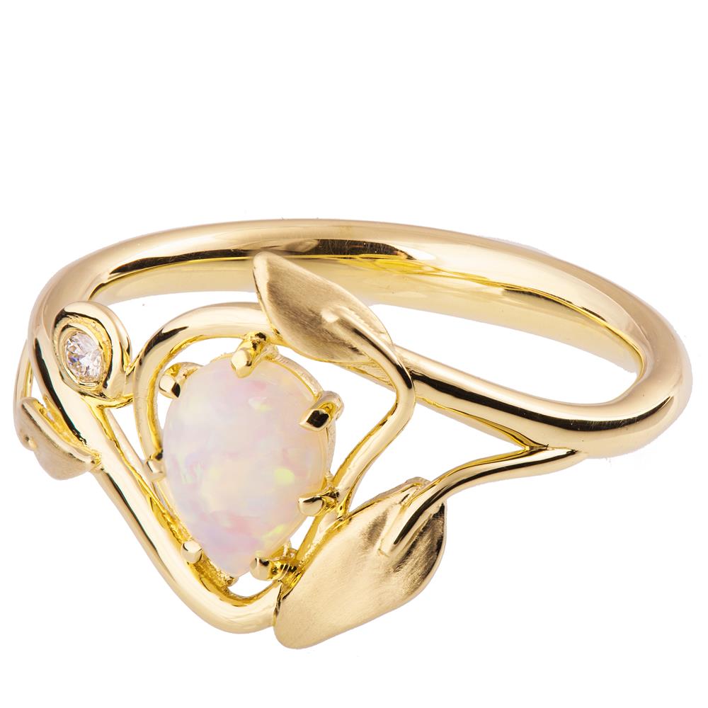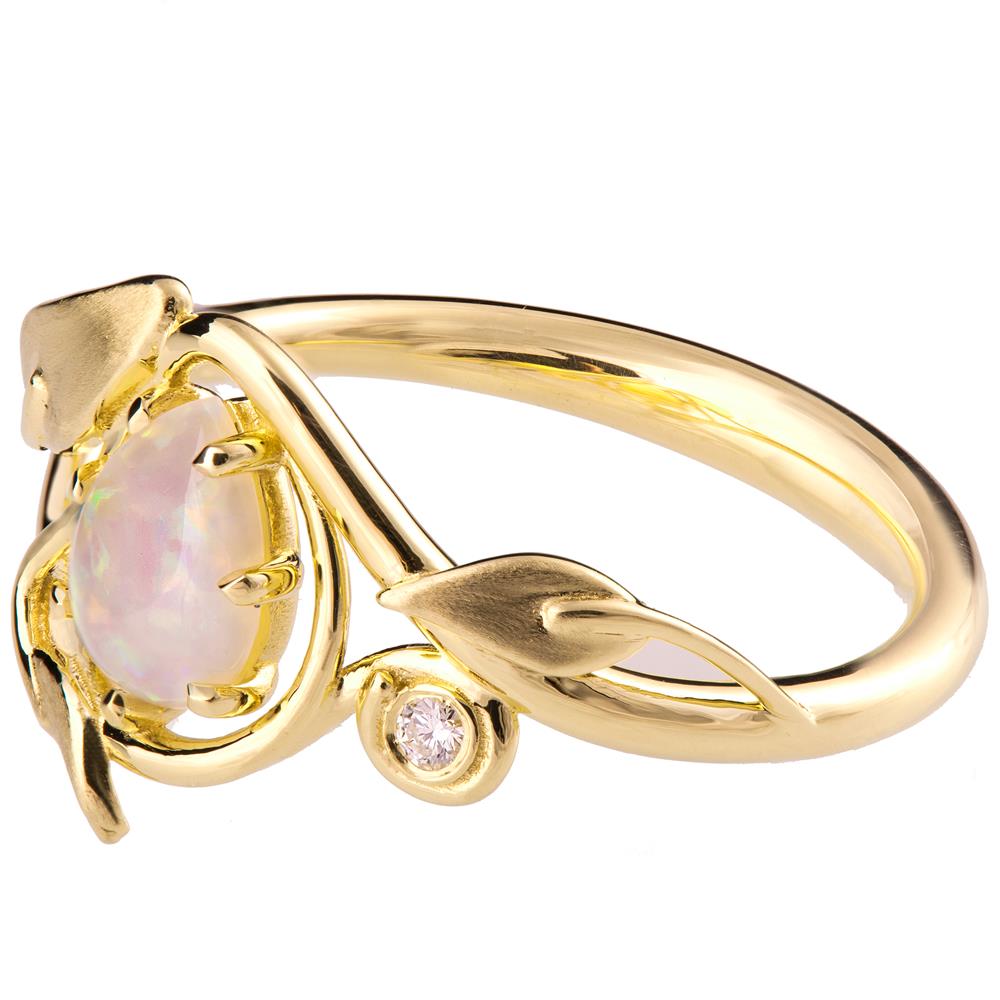 Leaves Opal Engagement Ring Yellow Gold 3