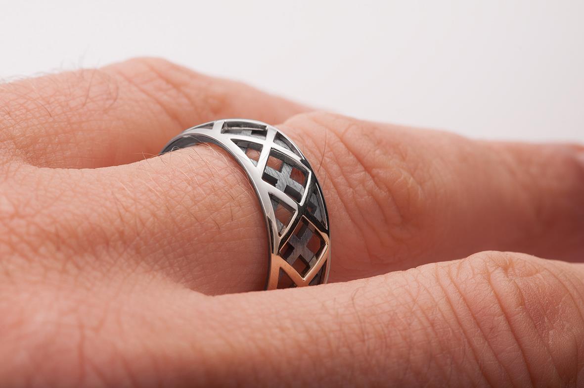 The ring is made of several parts designed in a 3d software and then 3d printed for the highest level of accuracy.