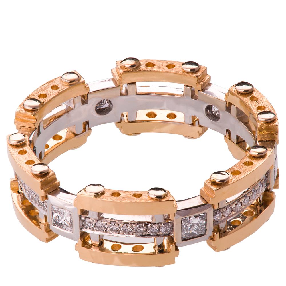 The parts are then hand finished and put together in the oldest form of jewelry making with hammering and welding to create this unique result.
