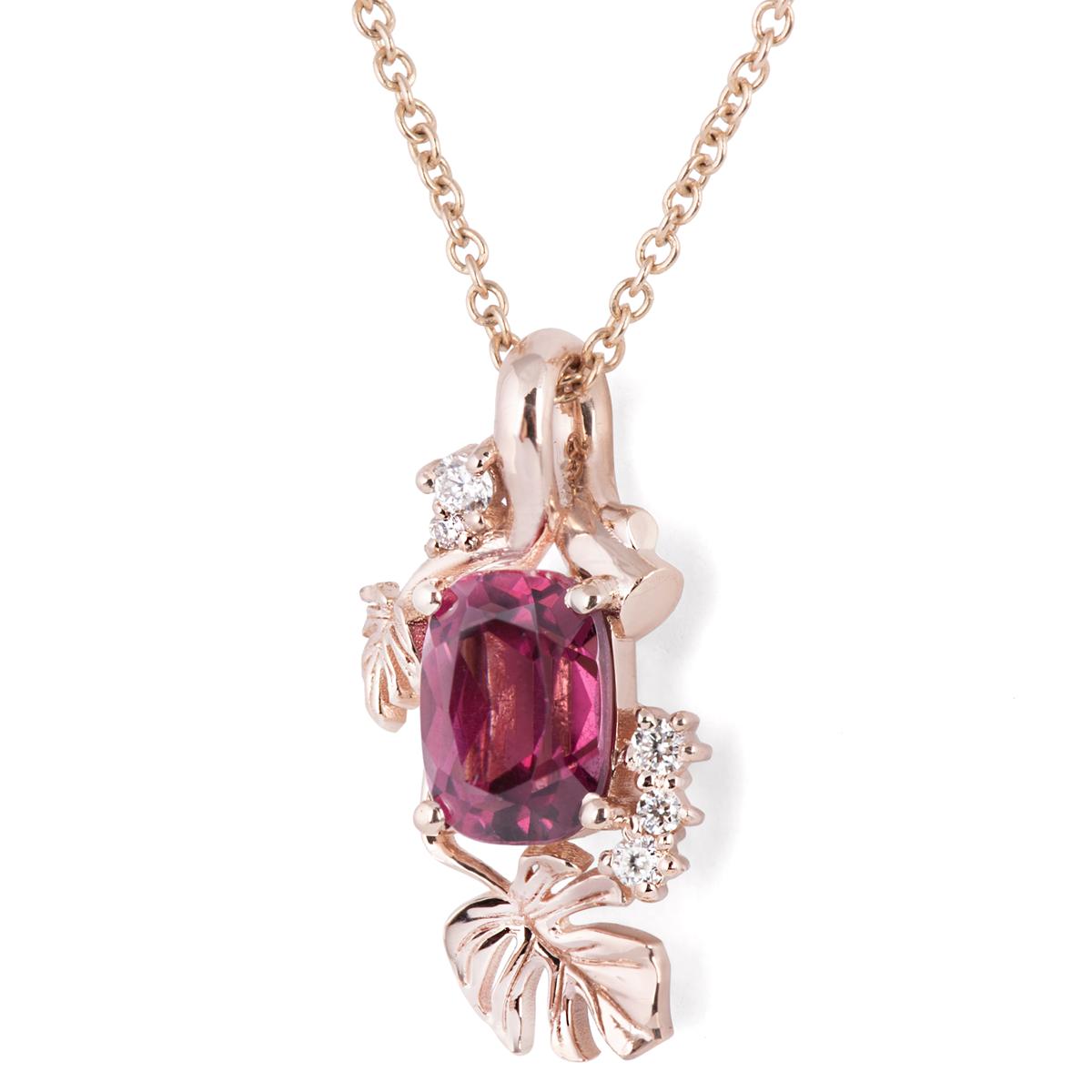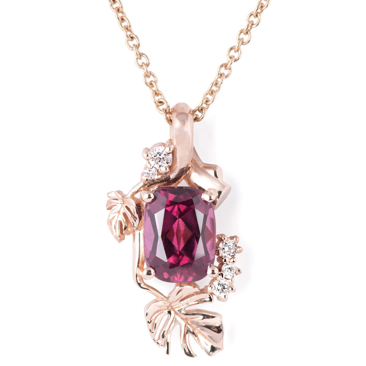Monstera leaves Cushion Garnet and Diamonds Pendant