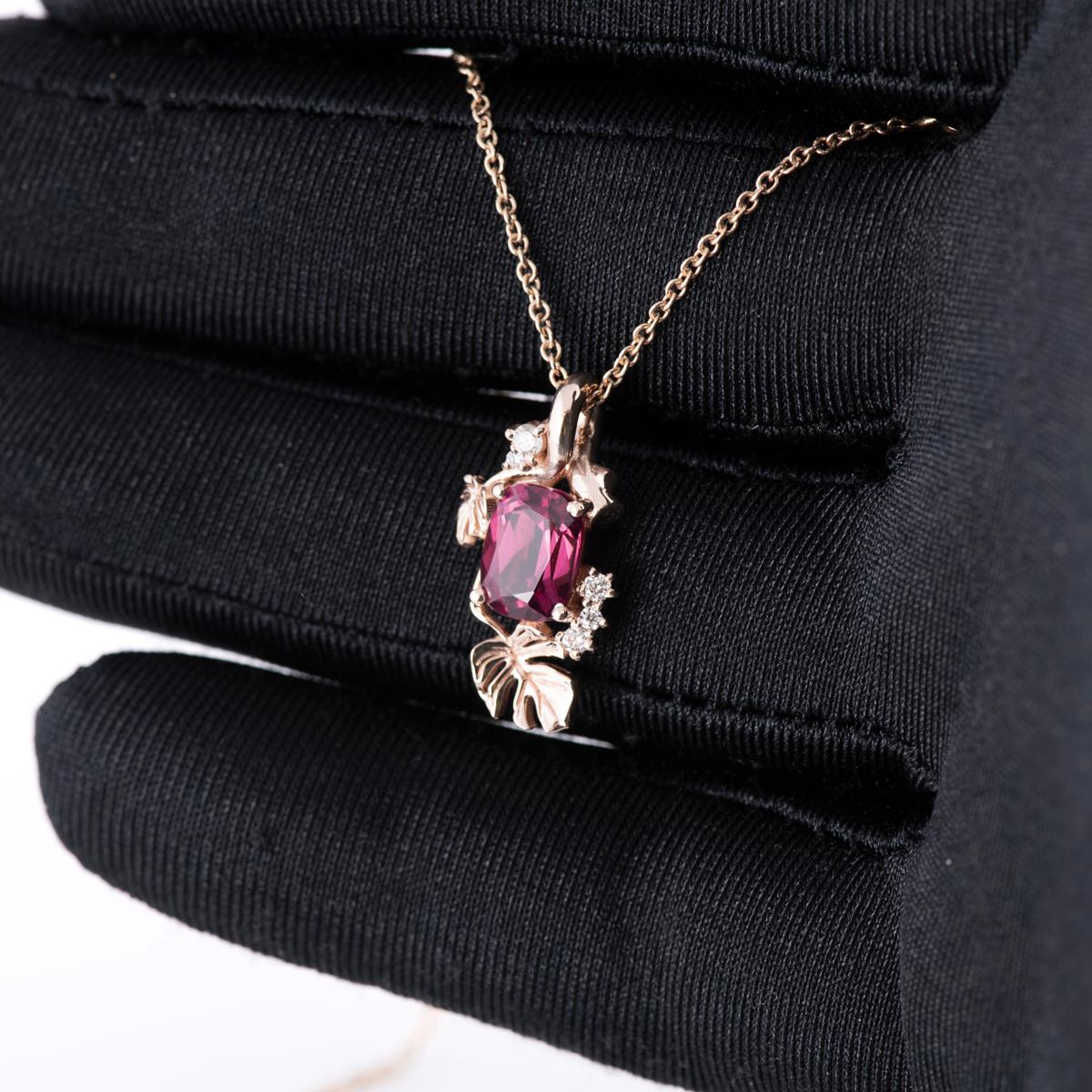 Be the first to review “Monstera leaves Cushion Garnet and Diamonds Pendant” Cancel reply