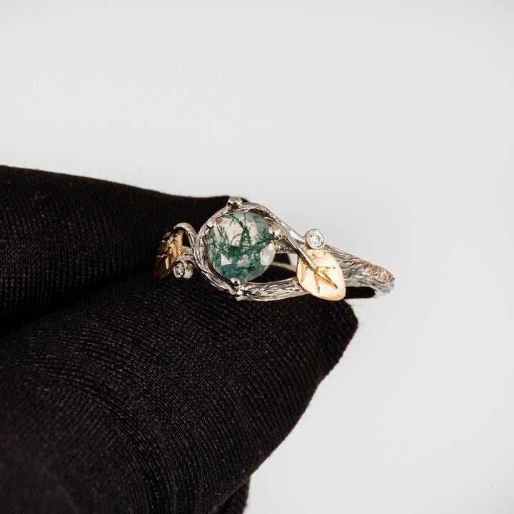 Be the first to review “Moss Agate Twig and Leaves Engagement Ring Yellow Gold” Cancel reply