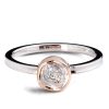 A handmade ring showing a beautiful bezel set raw diamond.