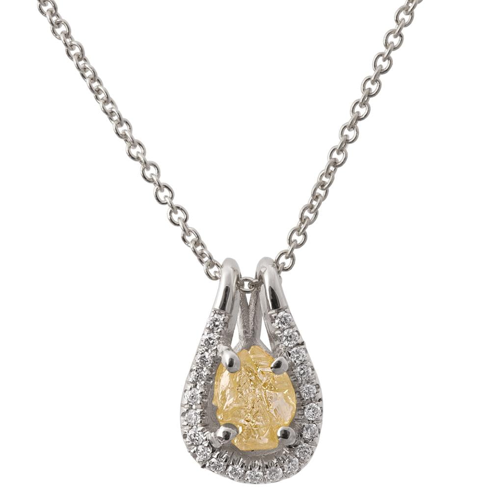 Raw Diamond Pendant White Gold