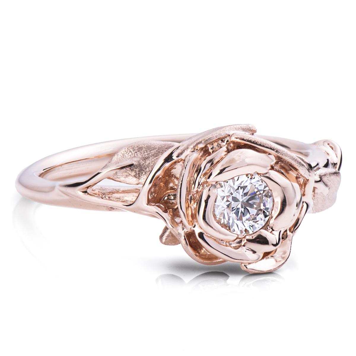 A handmade Rose engagement ring made in a delicate natural composition.