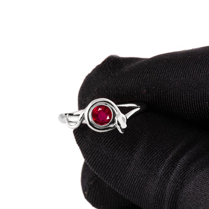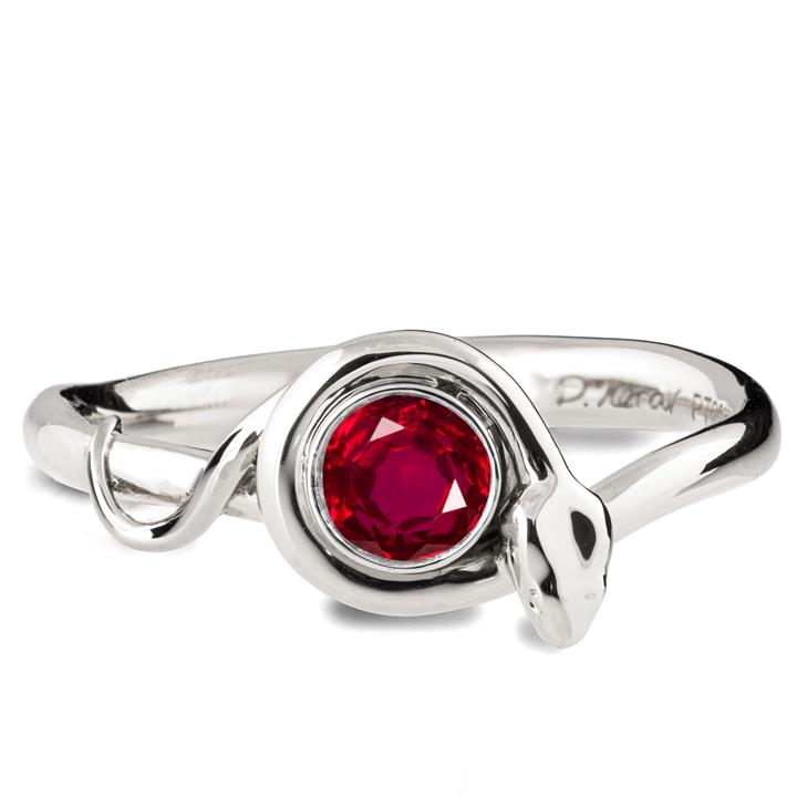 A handmade snake ring set with a high quality Ruby.