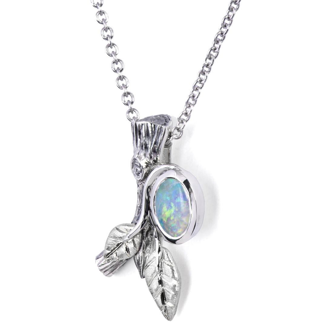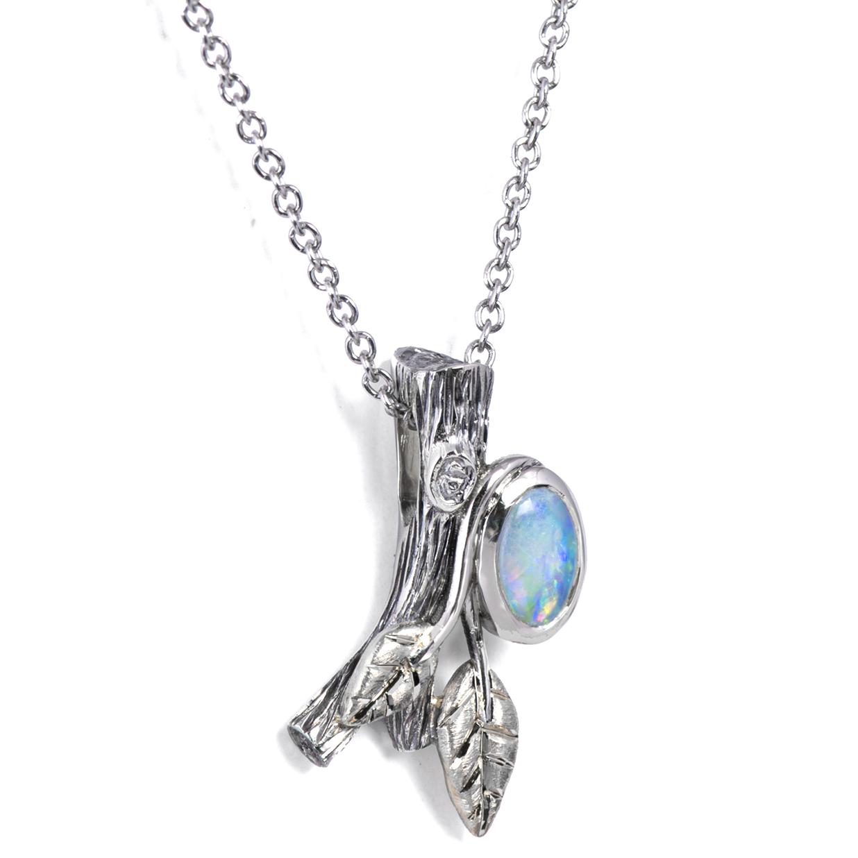 Twig and Leaf Opal Pendant White Gold