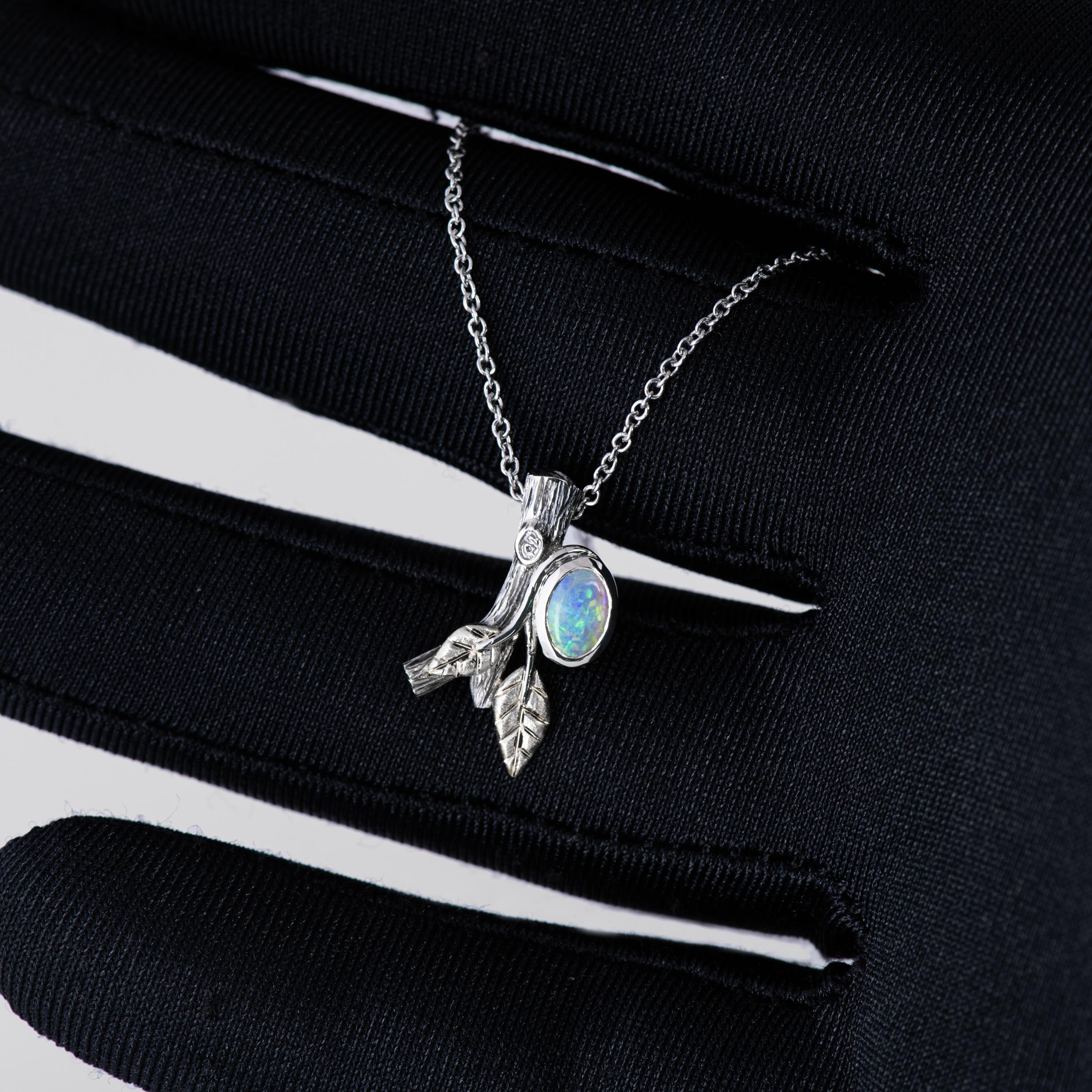 Be the first to review “Twig and Leaf Opal Pendant White Gold” Cancel reply