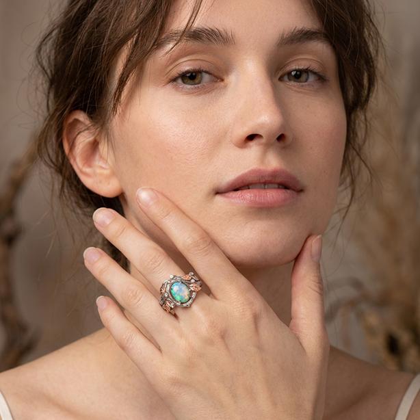 The rings display a natural leaves composition that will slightly change depending on the opal you choose to set in your ring.
