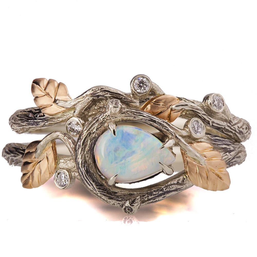 Be the first to review “Twig and Leaves Pear Opal Bridal Set Rose Gold” Cancel reply