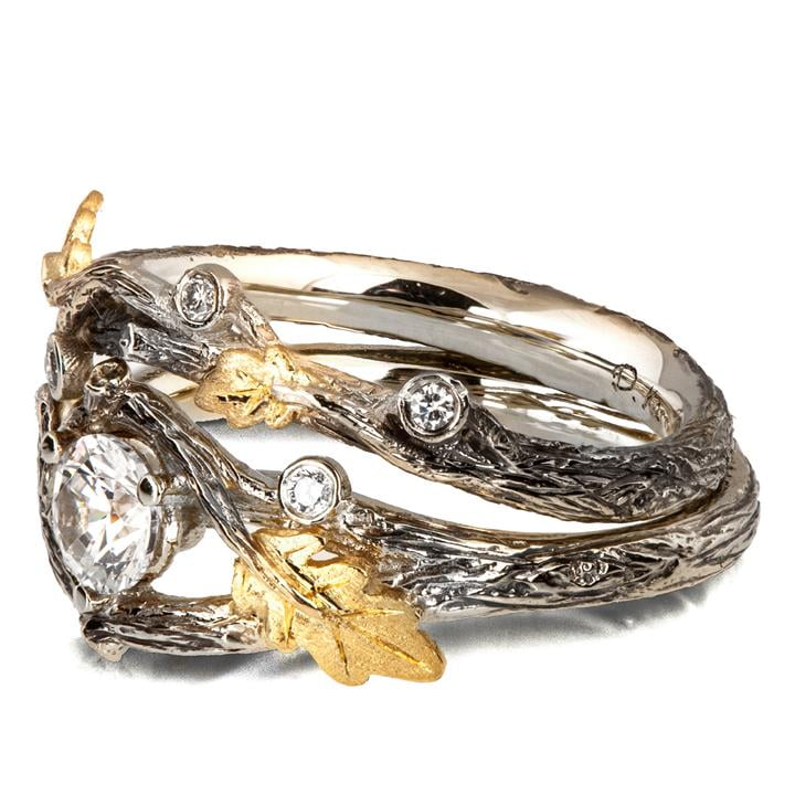 Twig and Oak Leaf Bridal Set Yellow Gold and Moissanite