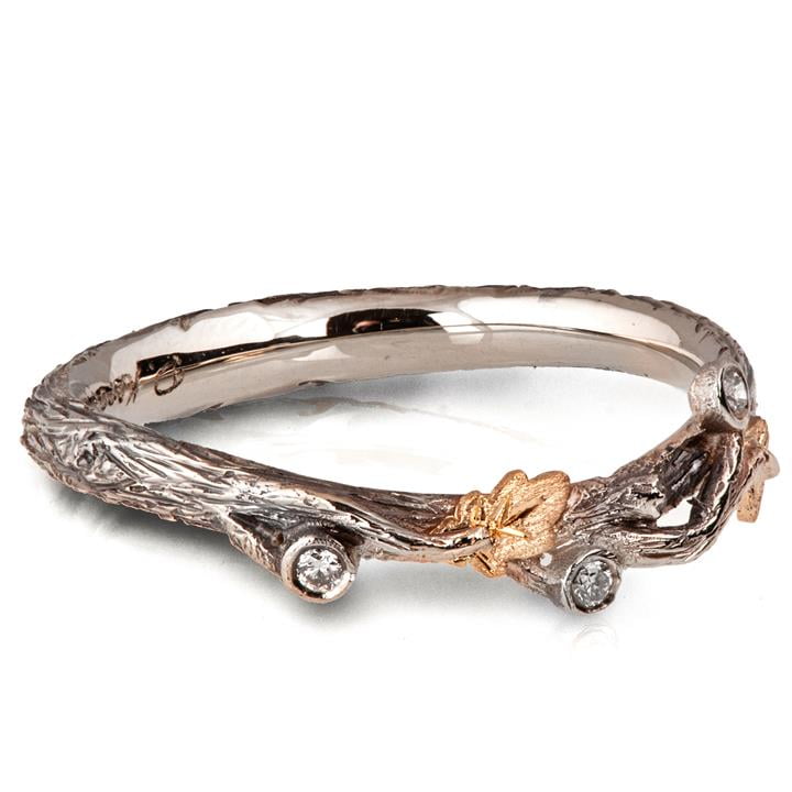 Twig and Oak Leaf Wedding Band Rose Gold