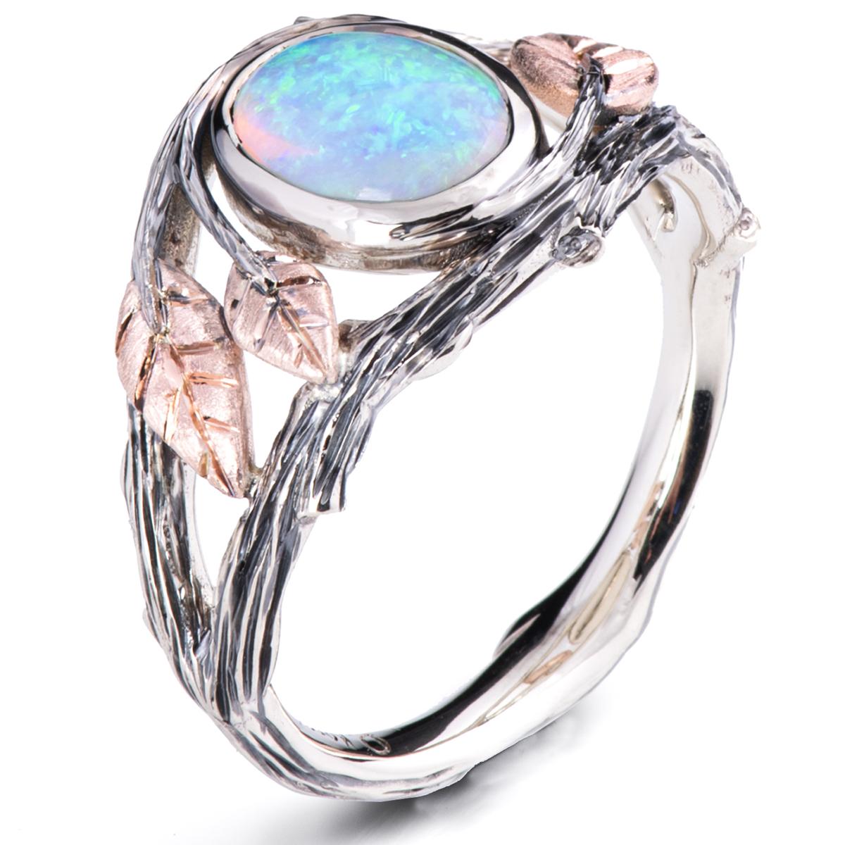 Twig and Leaf Opal Engagement Ring Rose Gold 8